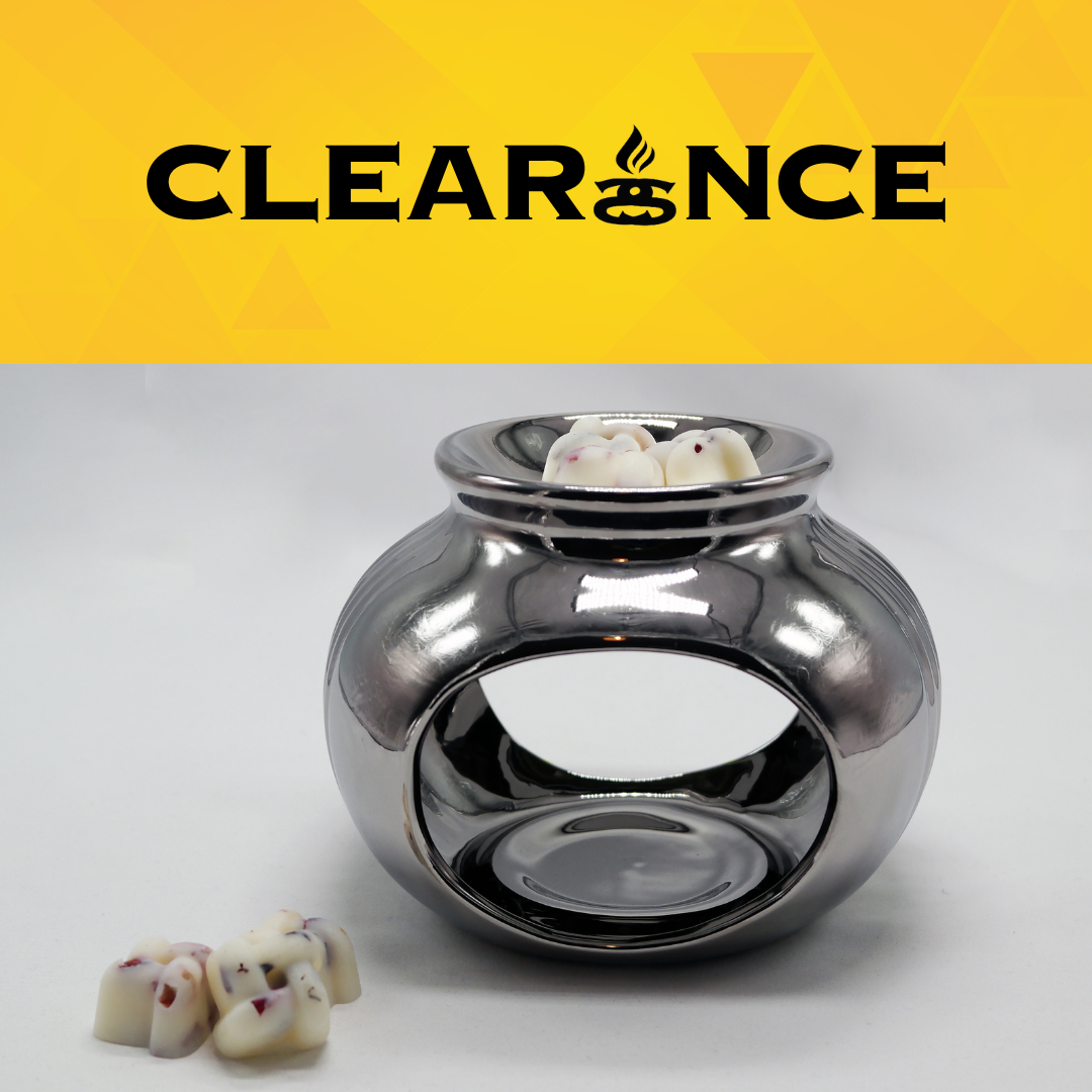 Clearance - Chrome | Silver Sofia Groove Ceramic Tea Light Wax Burner/Melter